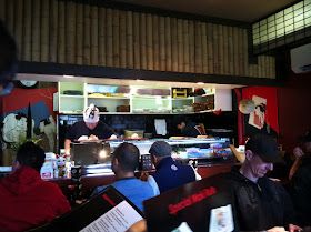 Sushi chefs hard at work behind the bar. We waited quite a while to get a seat because the place was packed.  Definitely not what I expected from a sketchy looking sushi place.